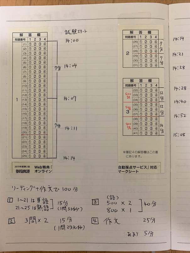 私が考える英検1級リーディングパート攻略の基本的な戦略は、英作文に至るまでに70%の得点率を維持しながら英作文を書く時間(20分から25分)を確保するというものです。